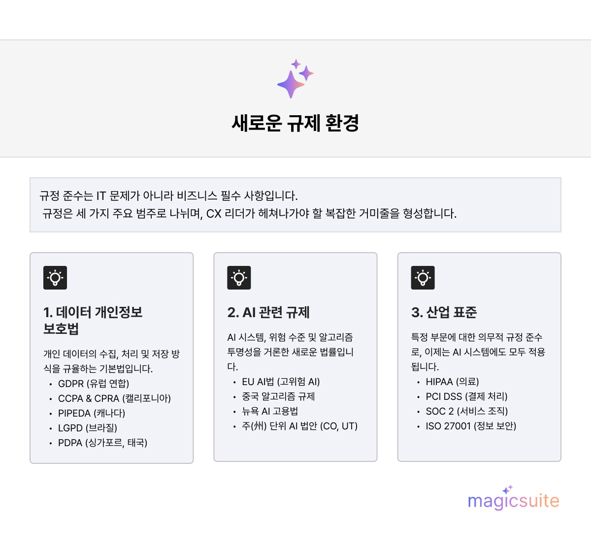 고객 경험 운영을 위한 AI 규제 컴플라이언스가 실제로 무엇을 의미하는지 살펴보겠습니다.