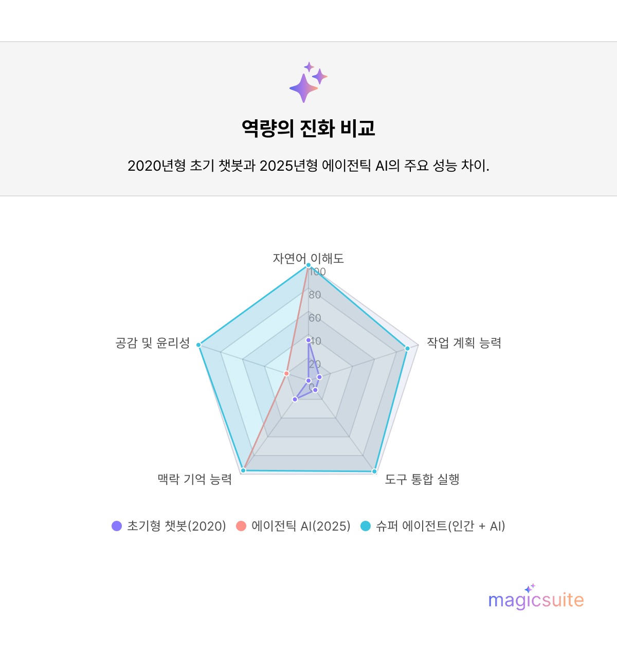 2025년의 진정한 "현실 점검"은 인간의 대규모 퇴출이 아니라 품질 기준의 상향이라는 것입니다. AI가 "지루한" 작업을 처리하므로 인간은 "인간적인" 작업을 처리할 수 있습니다. 이것이 슈퍼 에이전트를 만들어냈습니다.