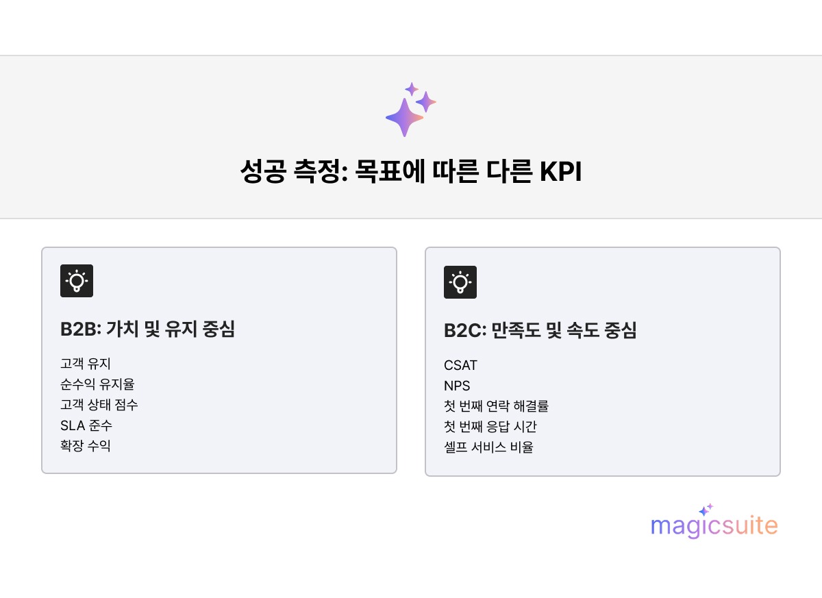 B2B 고객 서비스와 B2C 고객 서비스의 주요 차이점을 알아보세요. 고객 서비스 전략, 핵심 지표, 성공 사례를 통해 비즈니스에 맞는 최적의 접근 방식을 찾으세요.