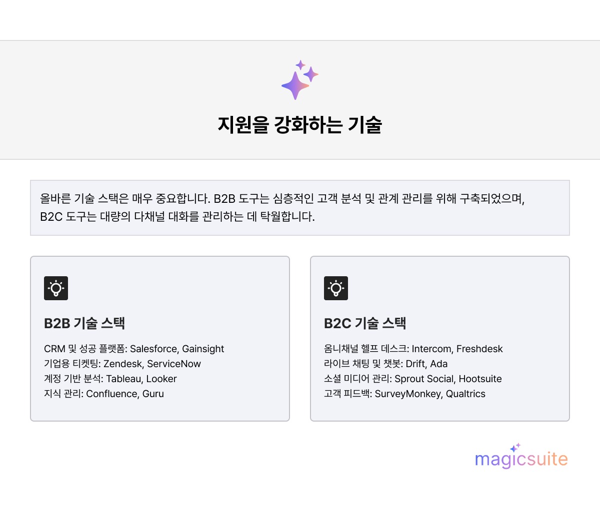 현대 고객 서비스는 B2B와 B2C 경험을 모두 향상시키기 위해 점점 더 AI를 활용합니다. MagicSuite.ai는 기업이 다음을 수행할 수 있게 합니다: