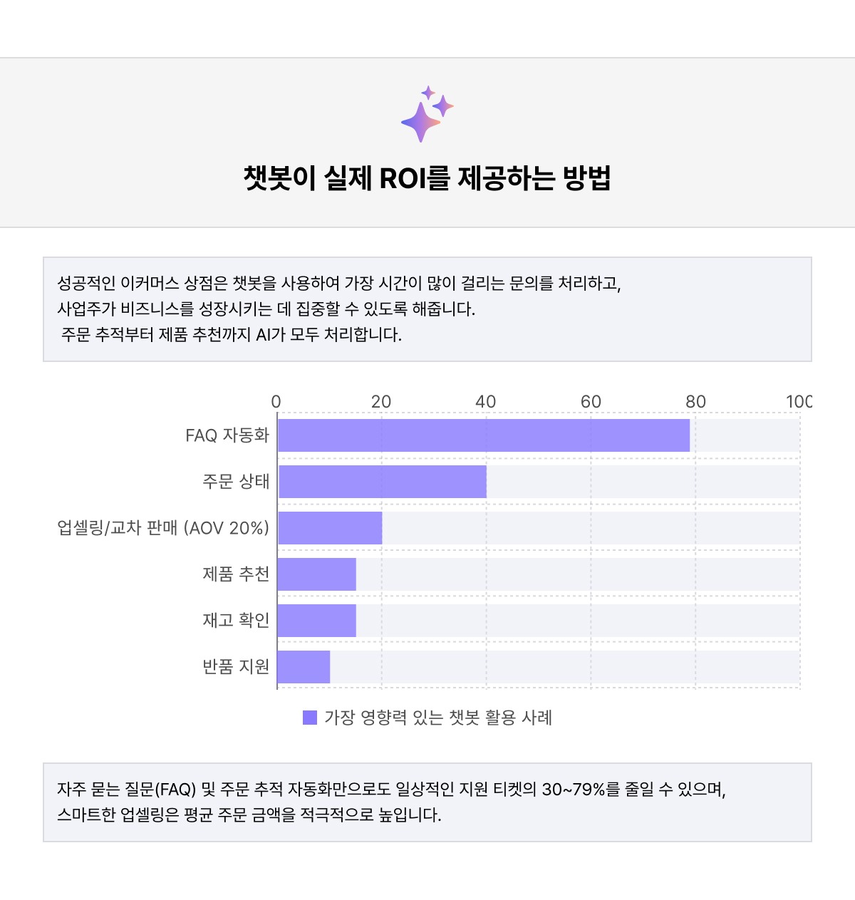 이 가이드에서는 성공적인 전자상거래 기업이 소규모 기업을 위한 챗봇을 어떻게 사용하는지, 업계 리더들의 실제 사례, 그리고 이 기술을 어떻게 활용할 수 있는지 정확히 알려드립니다.