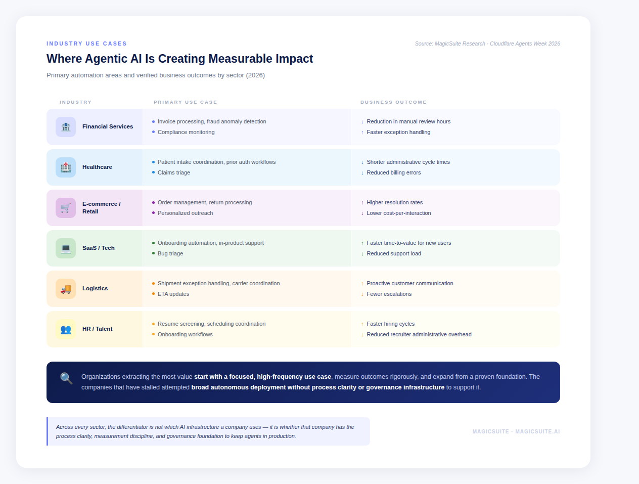 This is the decisive factor in 2026. As infrastructure commoditizes and it is commoditizing rapidly, the competitive advantage will accrue to the organizations with the sharpest process clarity: they know which workflows to automate, they can measure the outcome, and they have the governance in place to expand confidently.