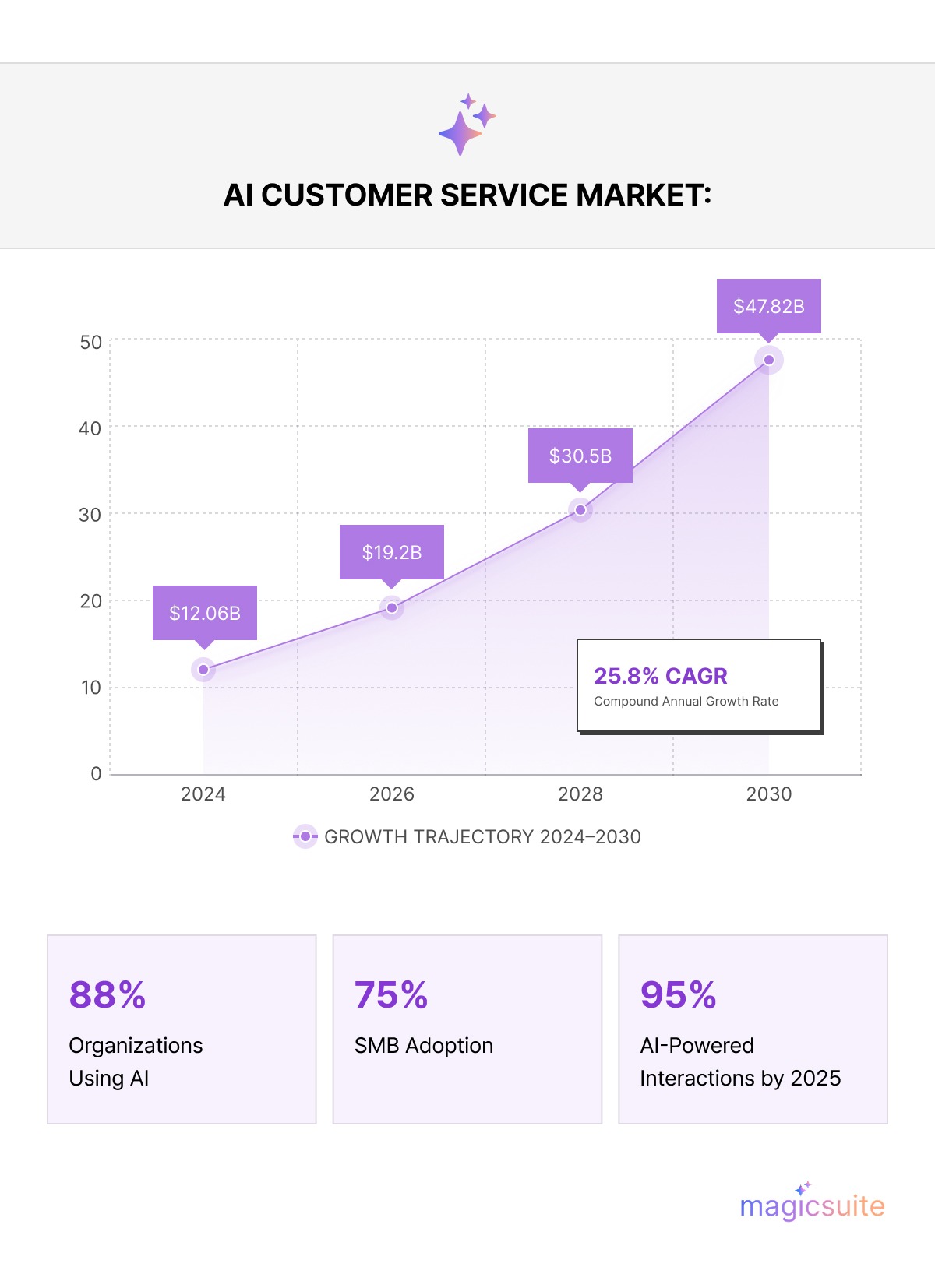 The AI customer service market is not just growing; it’s exploding. Projected to reach $47.82 billion by 2030, the market is expanding at a compound annual growth rate (CAGR) of 25.8%. This exponential growth signals a permanent shift in how business is done. Companies that act now are positioning themselves to capture a share of this burgeoning market and build a lasting competitive advantage. Those that wait risk being left behind, saddled with inefficient processes, higher costs, and dissatisfied customers.