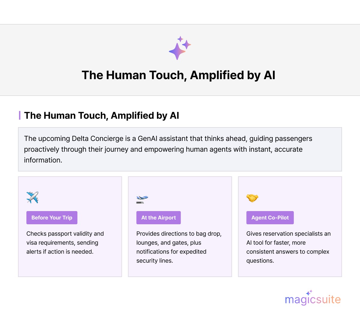 Delta customer service is moving from reactive customer service (answering questions) to proactive guidance (anticipating needs).