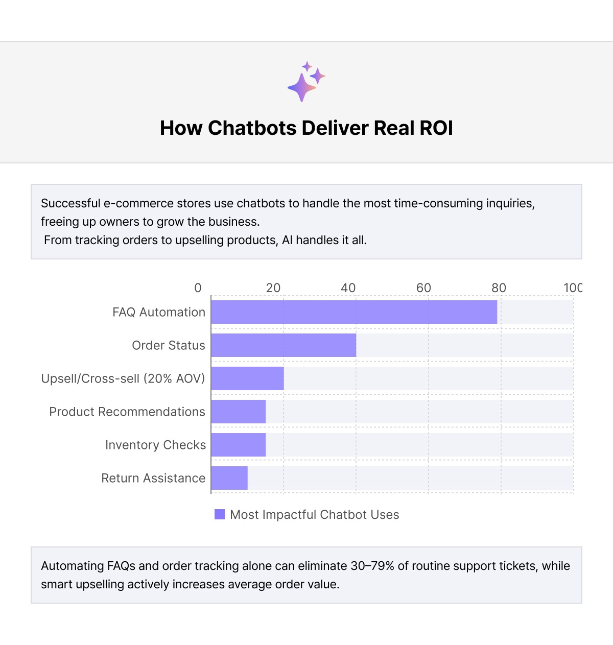 A customer can simply ask, "Where's my order?" and get an immediate answer with tracking details. This alone can eliminate 30-40% of your support tickets.