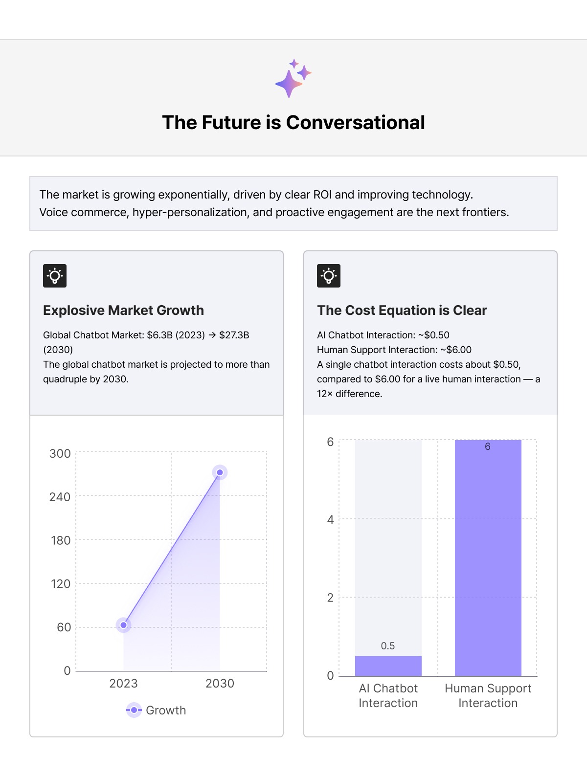 Instead of waiting for customers to ask questions, next-generation chatbots will proactively reach out: "I noticed you're looking at winter coats. Would you like help finding the right size?" or "Your favorite product is back in stock!"