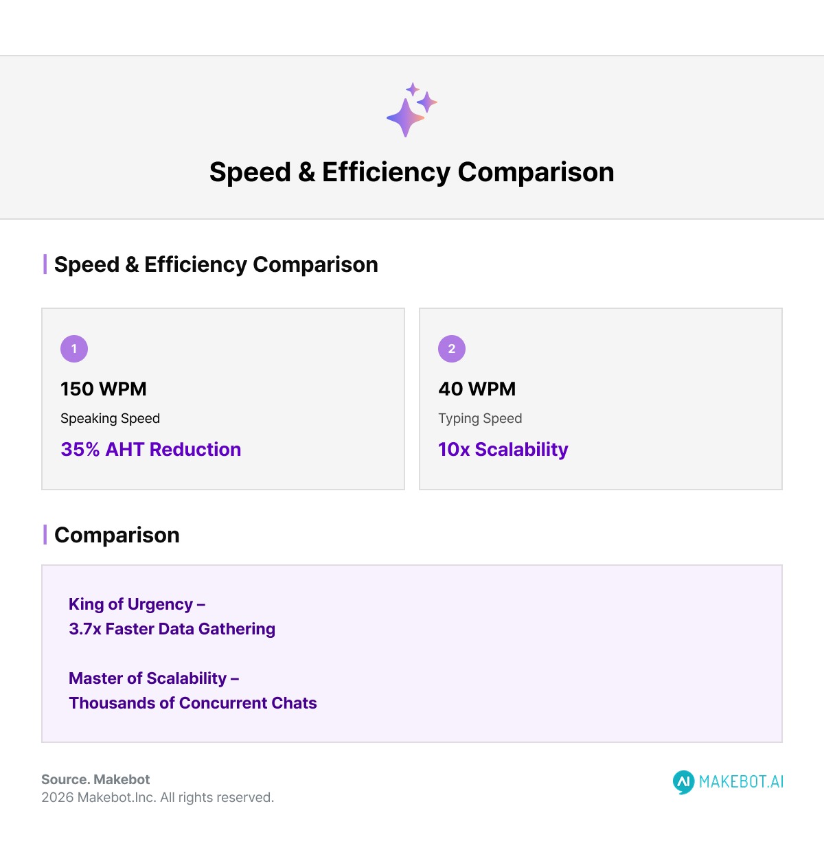 Most people speak at ~150 words per minute but type at only ~40. Voice AI resolves issues significantly faster, reducing Average Handle Time (AHT) by up to 35%.